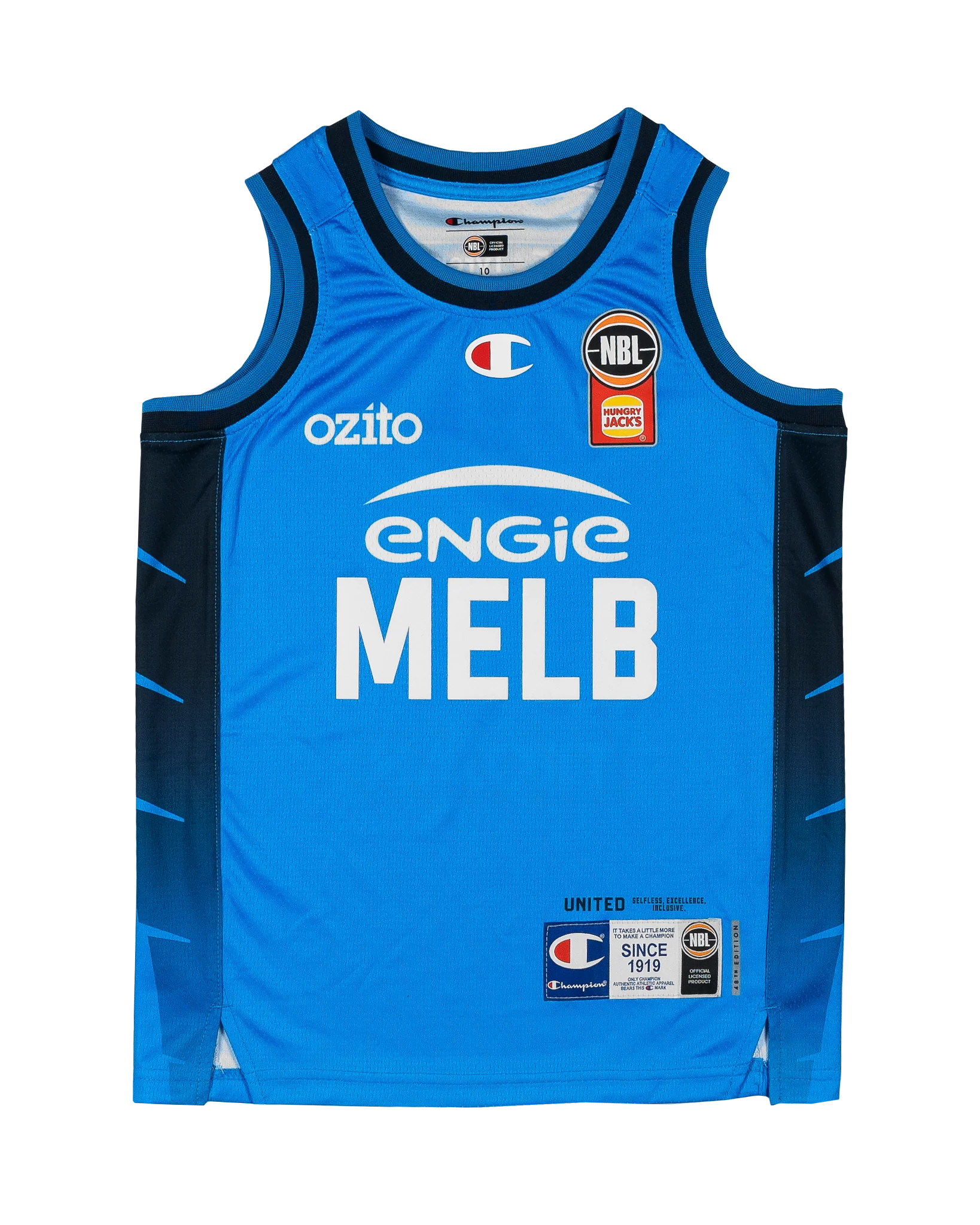 Champion brings its signature quality to the court with the Melbourne United 25/26 Youth Alternate Jersey. Designed for performance and style, this jersey is crafted with premium fabrics for superior comfort and durability. Featuring detailed team wordmarks, player name, and number in high-quality fabric appliqués and silicone Champion C and NBL logos for an authentic and top quality finish.